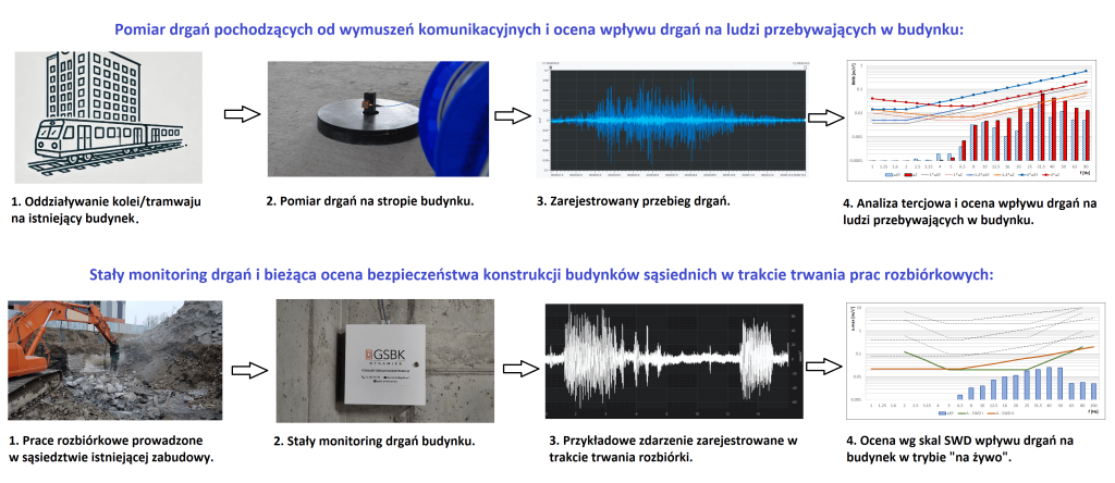 W tej sytuacji przeprowadzana jest prognoza oddziaływań oraz analiza numeryczna wpływu drgań na budynek i wpływu drgań na ludzi przebywających w budynku.